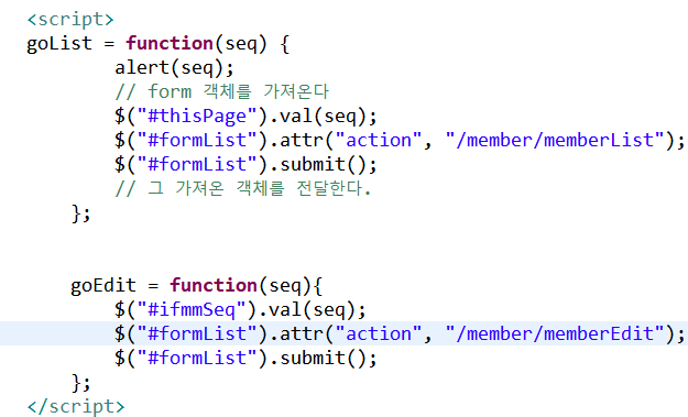 포스트 방식으로 할거면 다음 과 같이 hidden 으로 thispage등등 값을 받아와야한다.