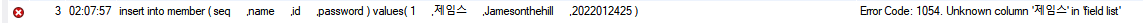 ※Don't forget use ' ' when you use a word. if you aren't that you can see this error.