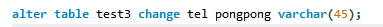 alter table tablename change tel pongpong varchar(45); As you know We can see from tel to pongpong.