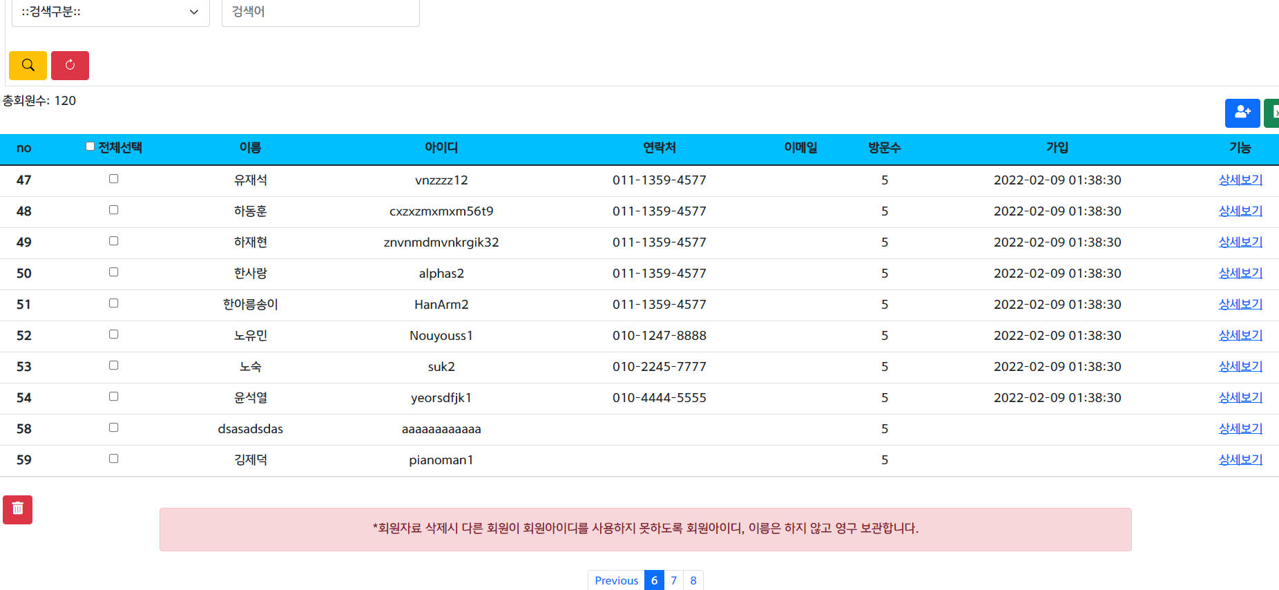 목록을 누르면 다시 6페이지 그대로 나타난다.
